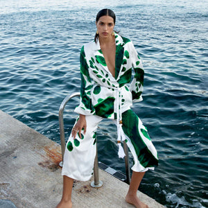 These unique hand-painted patterns inspired by Greek architecture are crafted by expert seamstresses and adorned with embroidery or prints by skillful artisans.This is a one-of-a-kind piece that will make you the center of attention wherever you go!Handmade in Athens, Greece,...