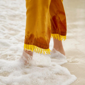 Created with slow fashion principles (handmade by artisans, crafted over days to ensure quality and sustainable use of materials, fewer and smaller collections of fashion trousers, making better use of resources and being transparent), our organic pants are made slow for long wear life. Each pair of eco pants can take days to hand-make. The ancient techniques that go into sewing these unique garments helps to ensure the piece’s quality. Our ethical shorts, artisan pants and fashion bottoms are also made from natural materials that are easier to recycle, such as 100% linen, wood accents and ethical silk.